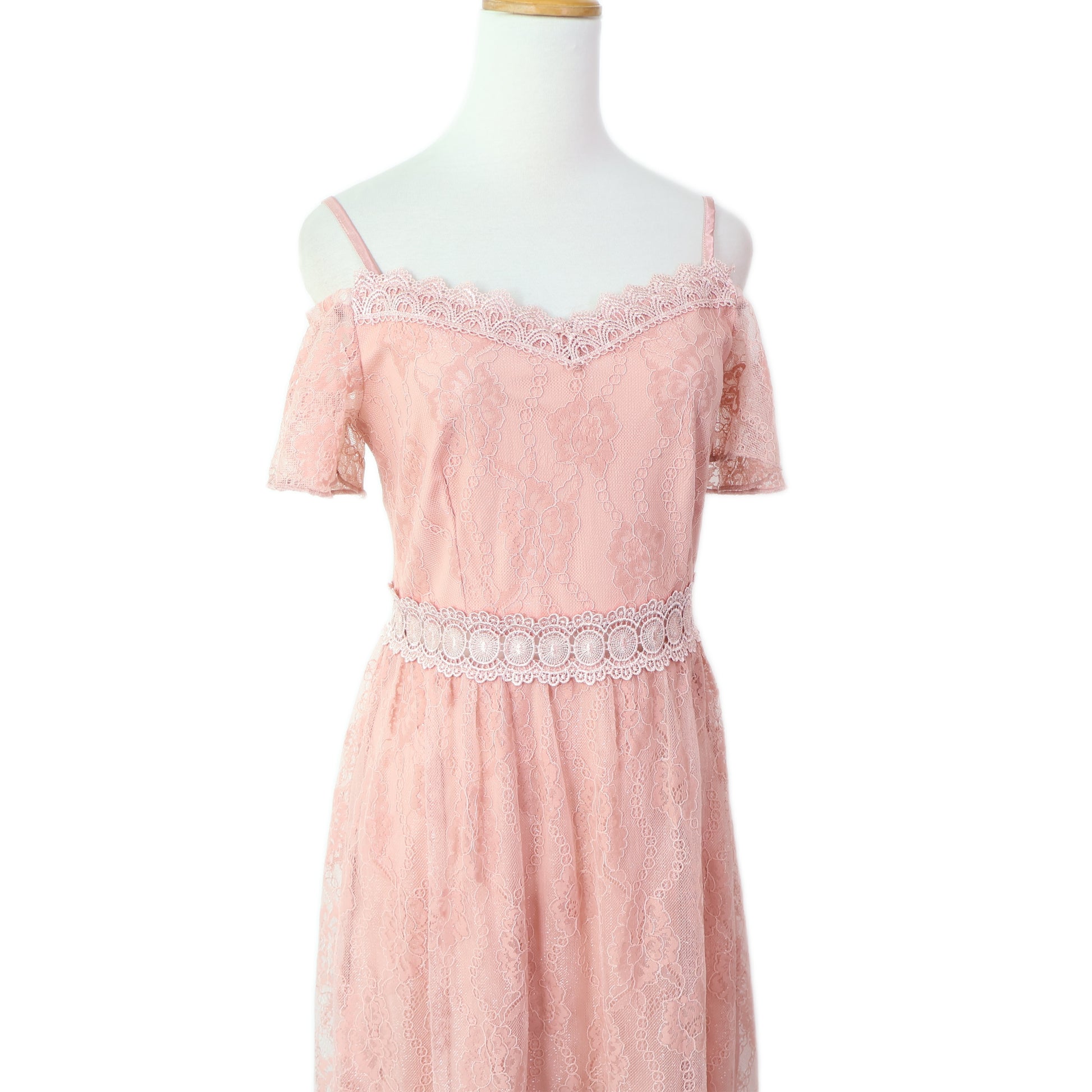 Cold Shoulder Overlay Lace Maxi Dress
