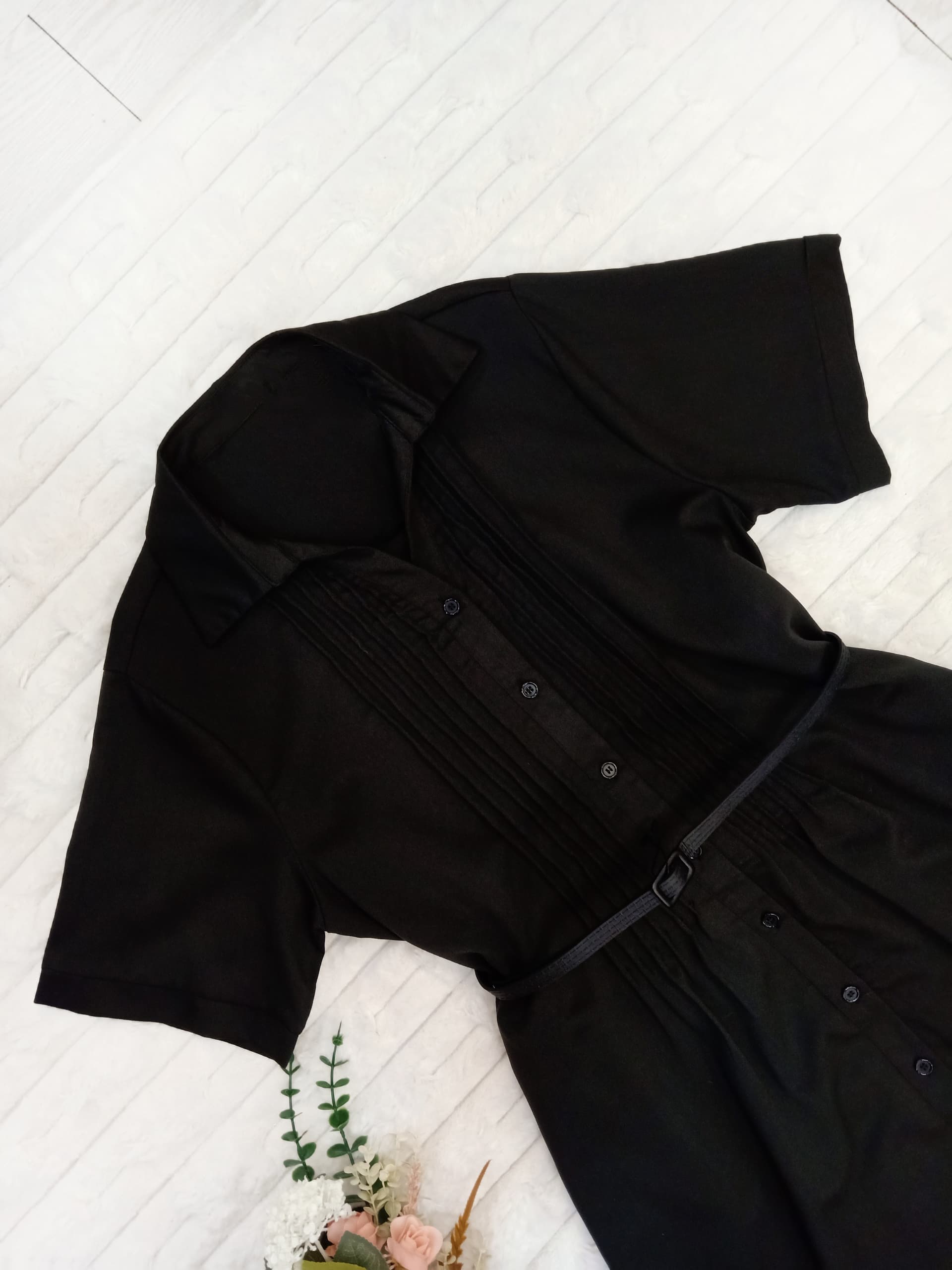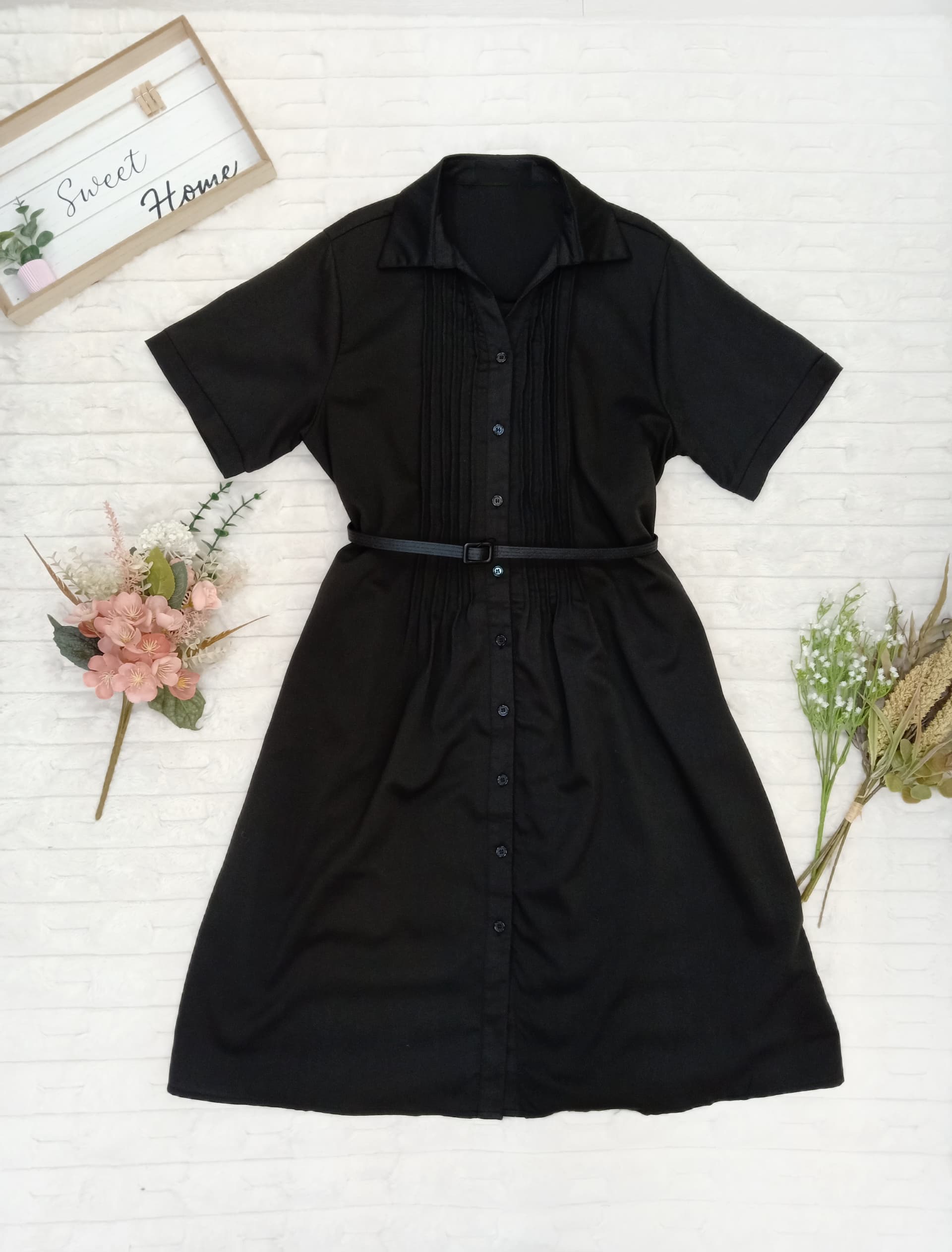 Collared Button Down with Pleated Front Midi Dress