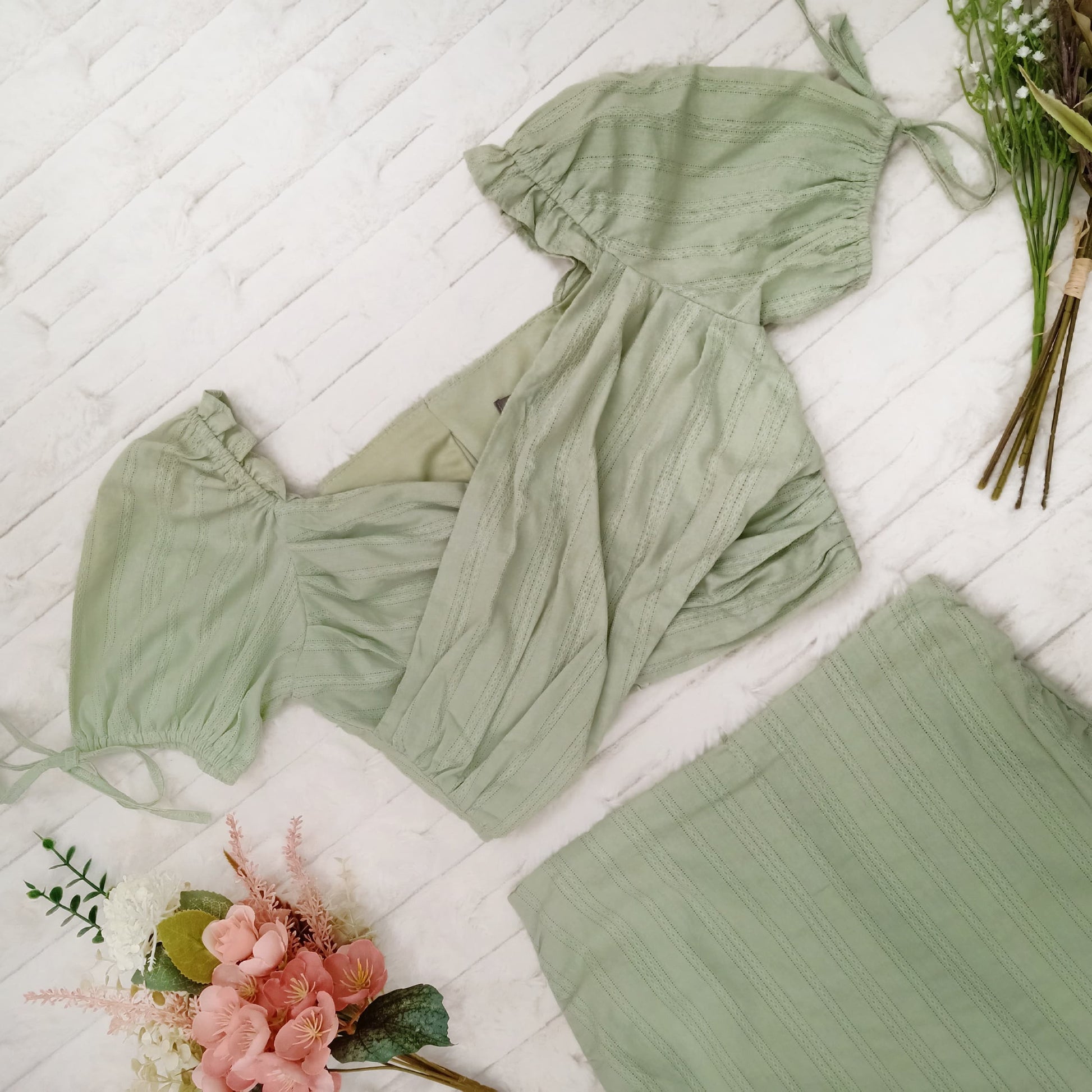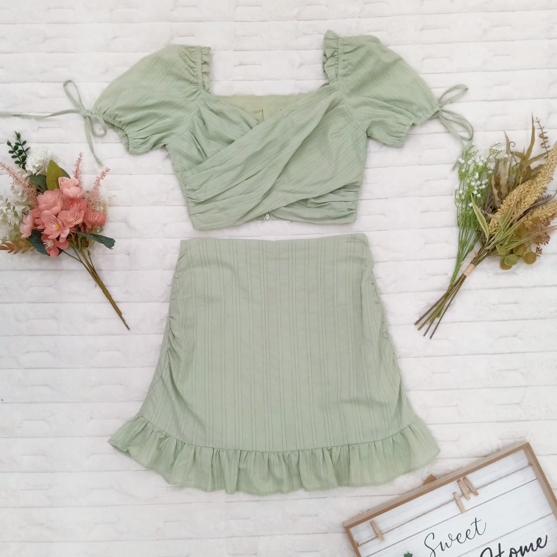 Draped V-Neck Ruched Crop Top & Ruffle Skort
