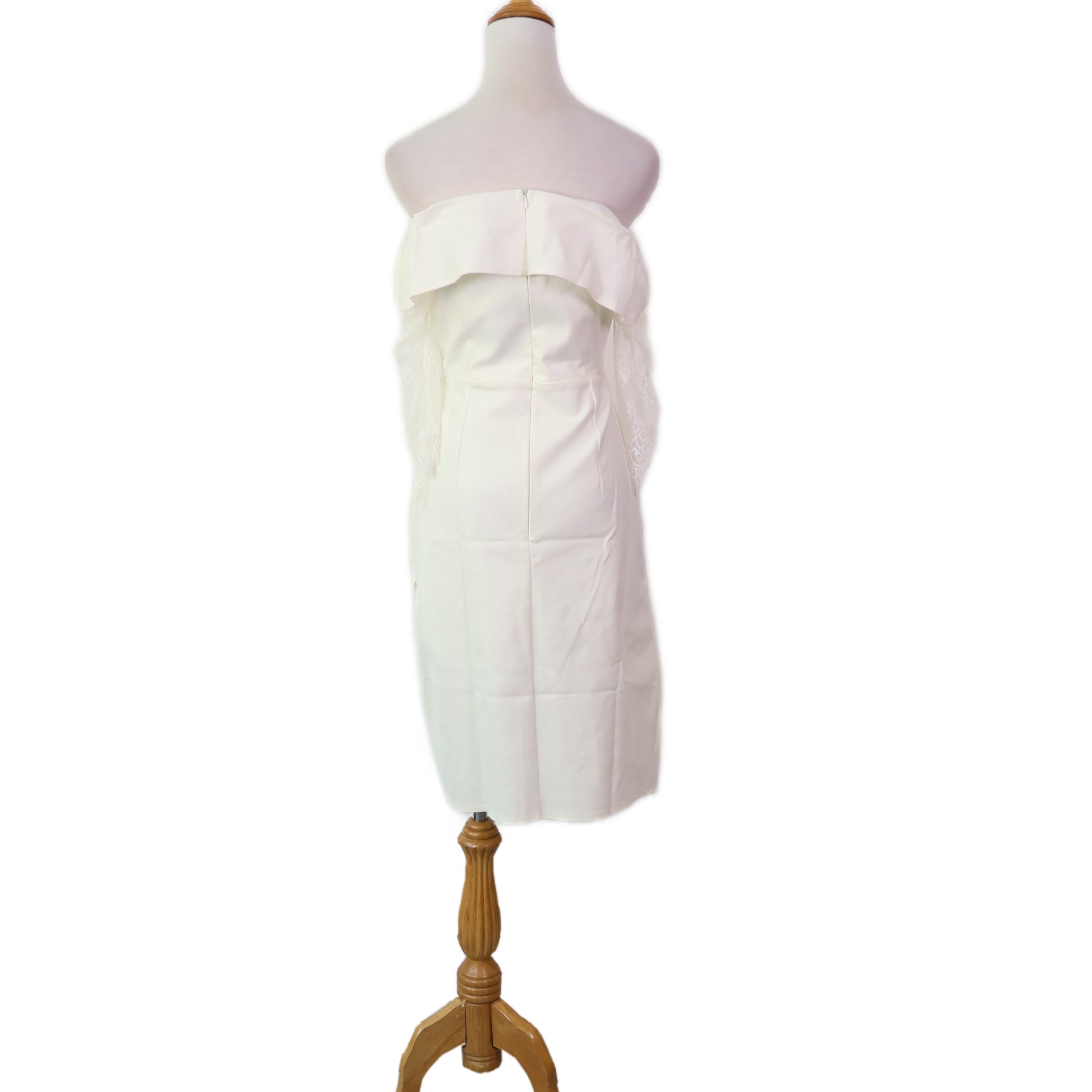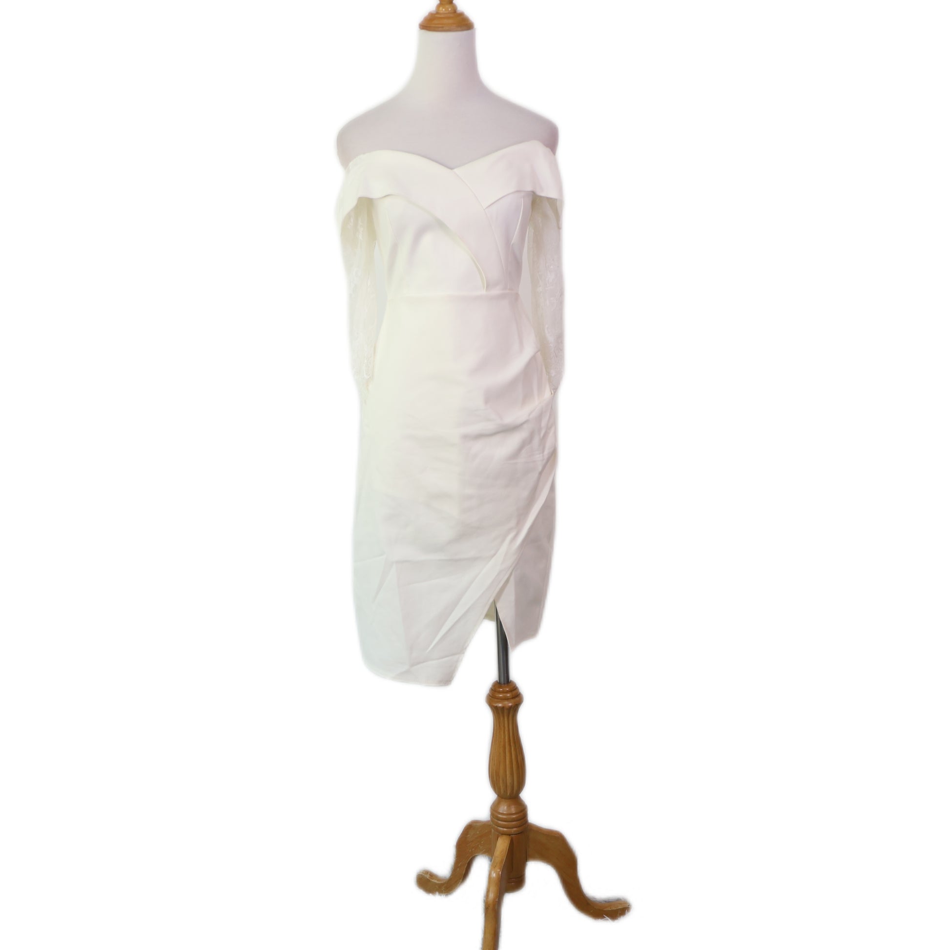 Elbow Length Lace Sleeves with Asymmetrical Slit Mini Dress