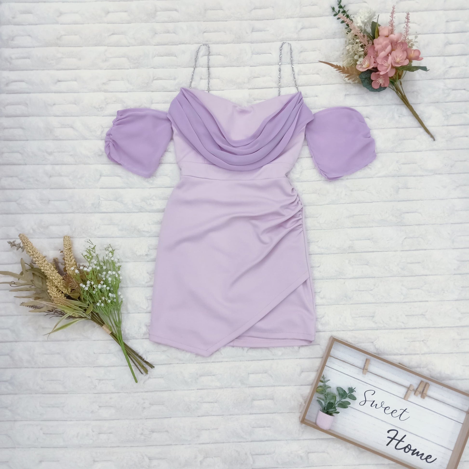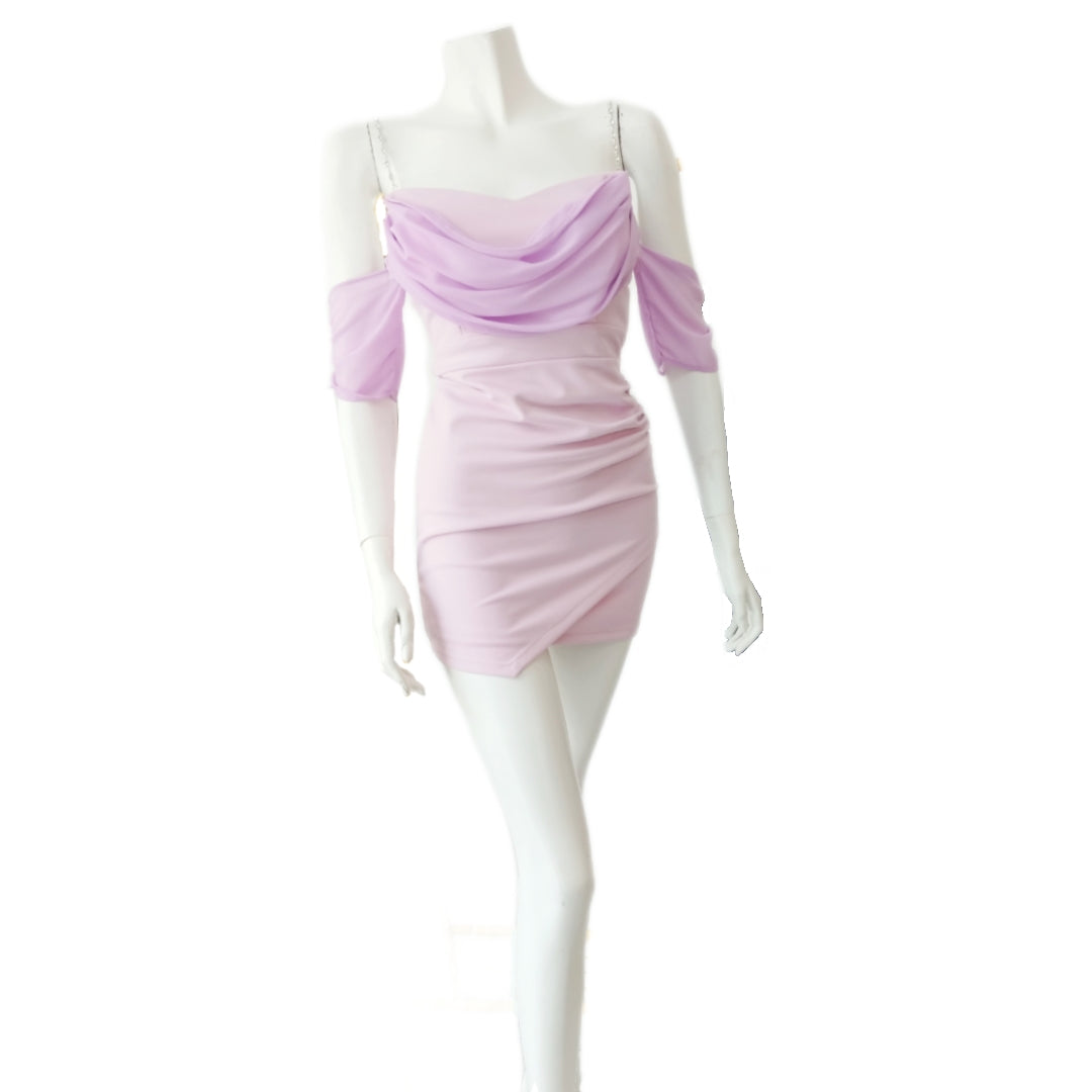 Faux Rhinestone Straps Cold Shoulder with Asymmetrical Slit Mini Dress