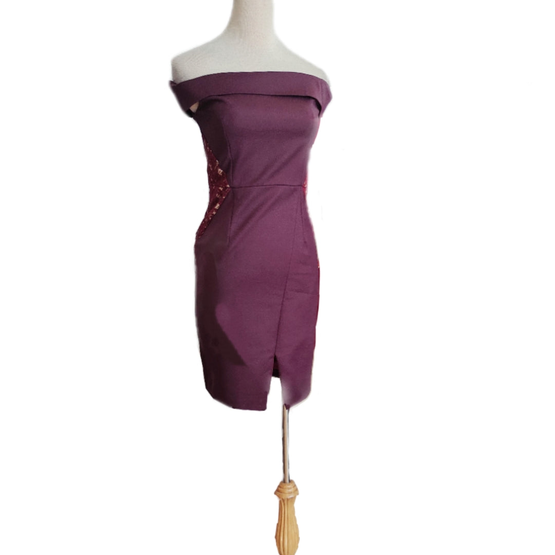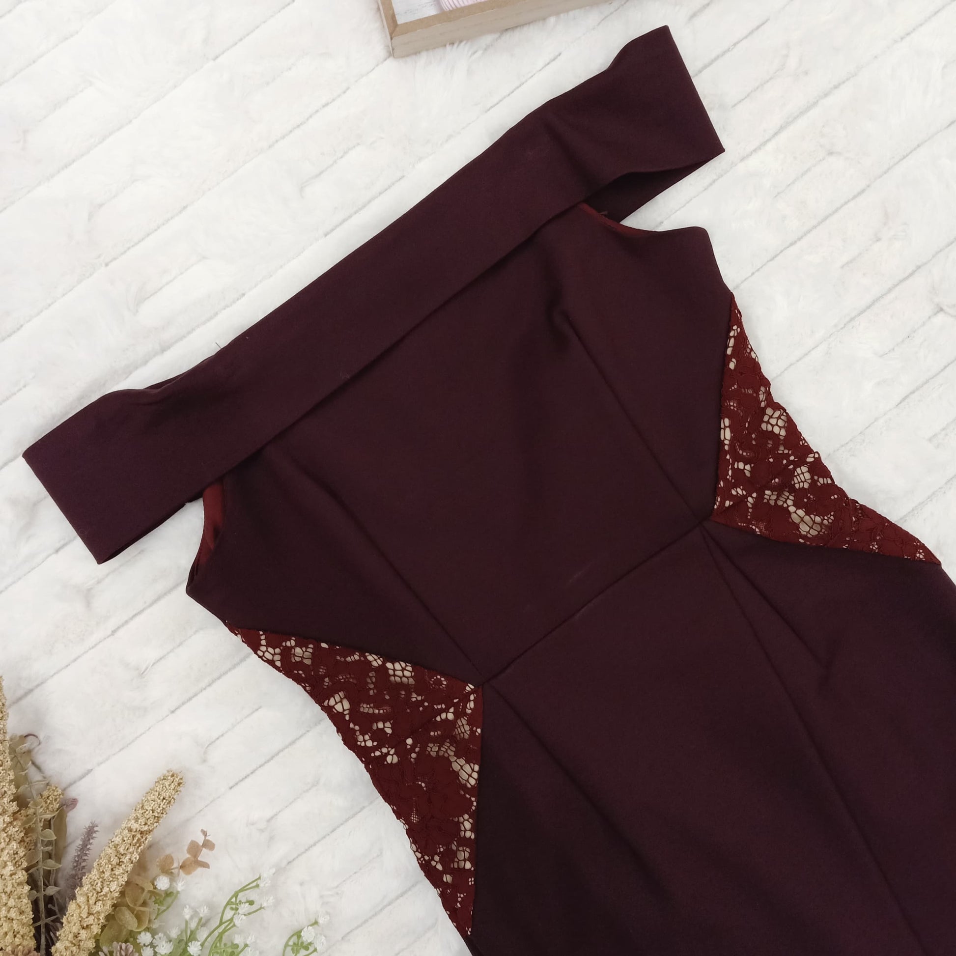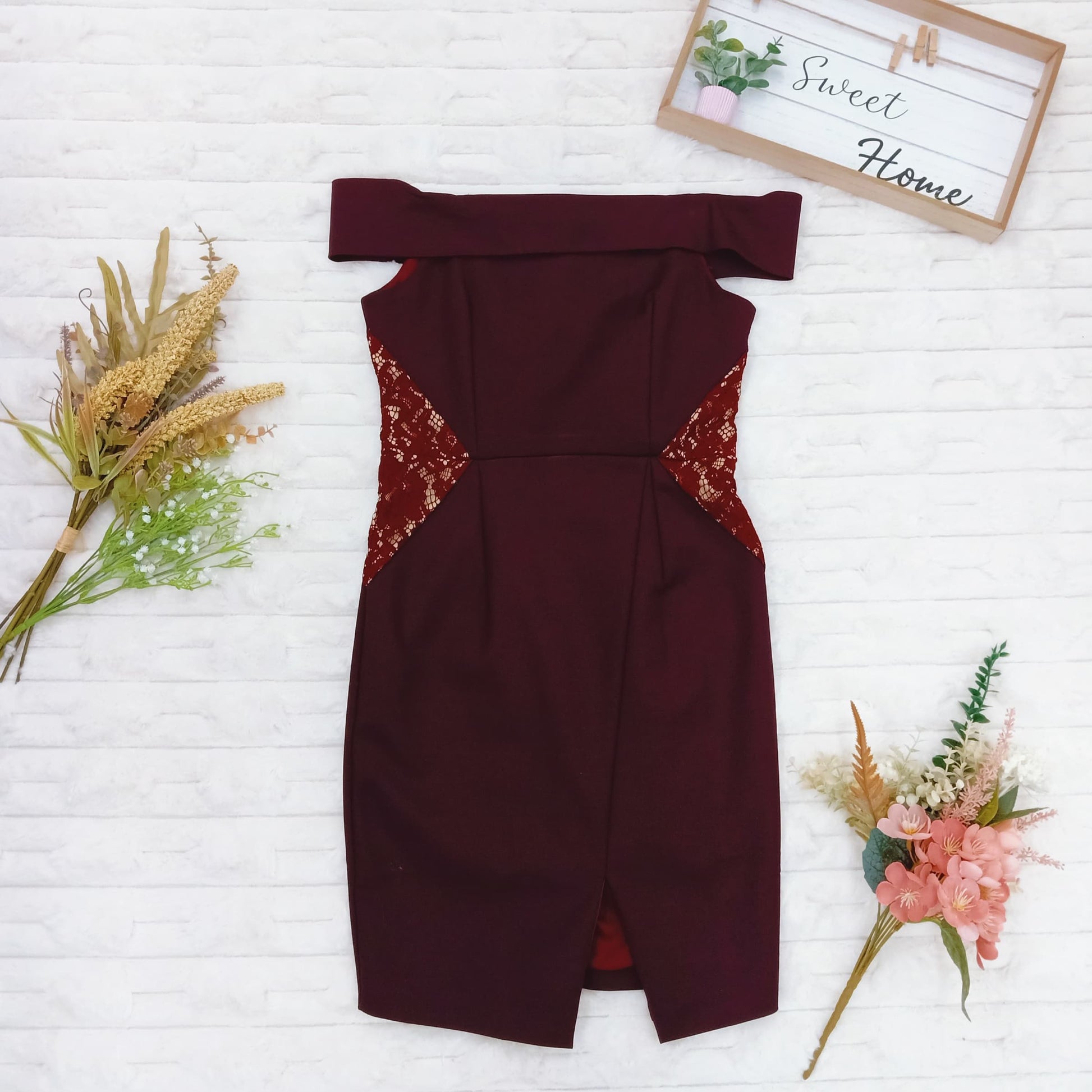 Off-Shoulder Lace-Trim Bodycon Mini Dress