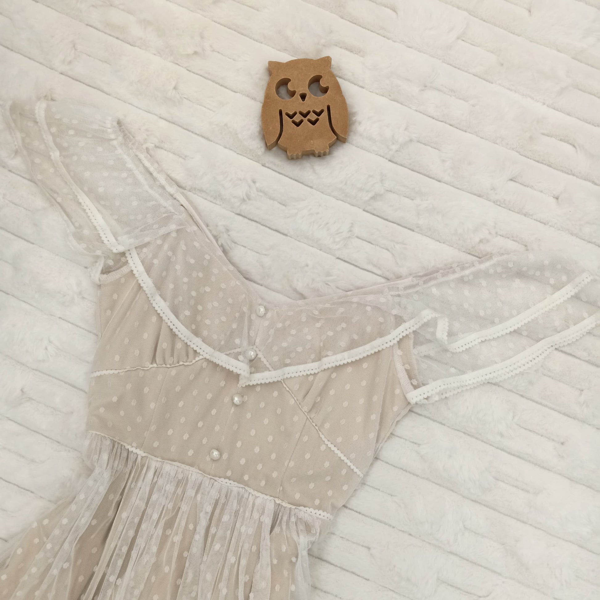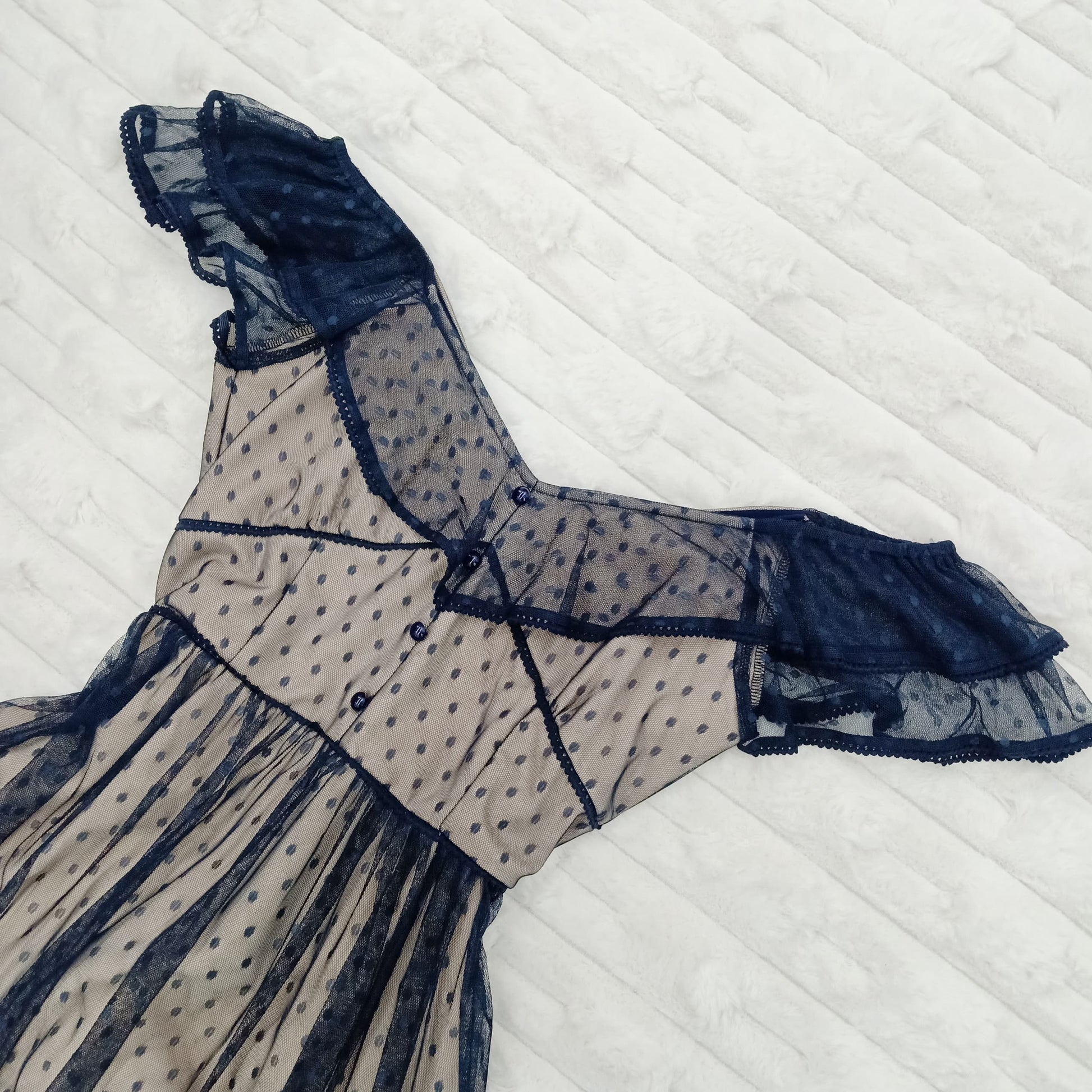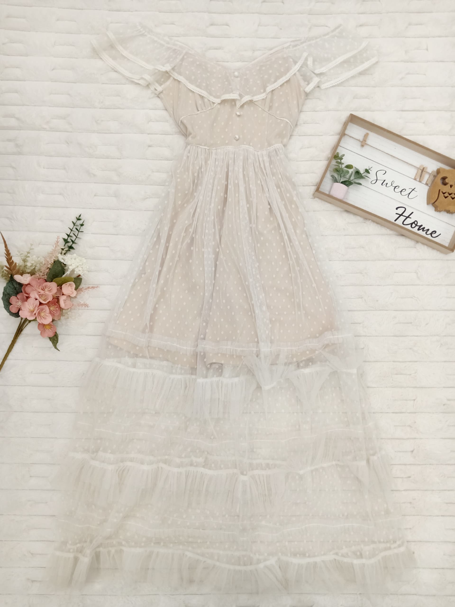 Off-Shoulder Polka Dot Mesh Tiered Maxi Dress