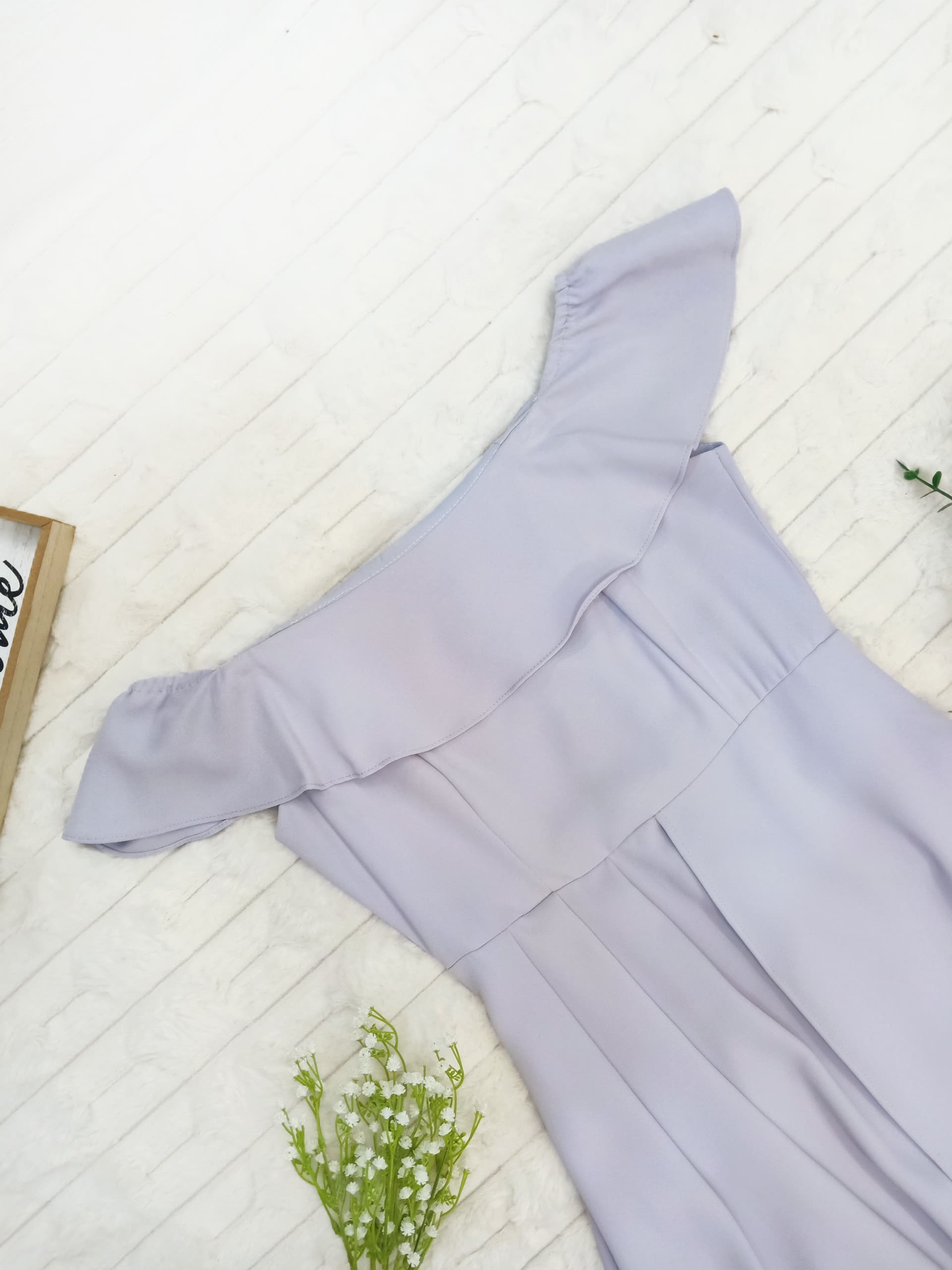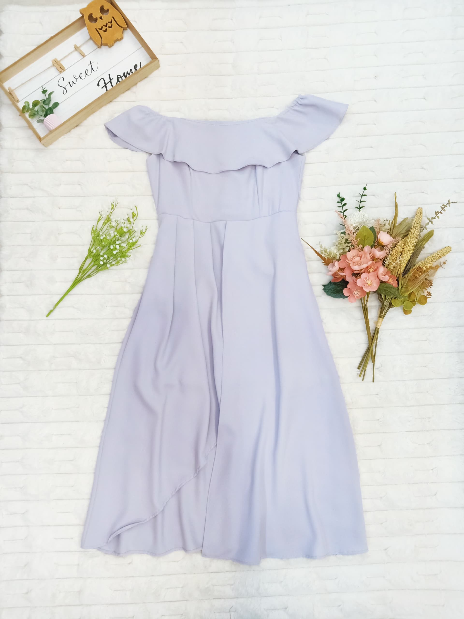 Off-Shoulder Ruffle Front with High Slit Midi Dress
