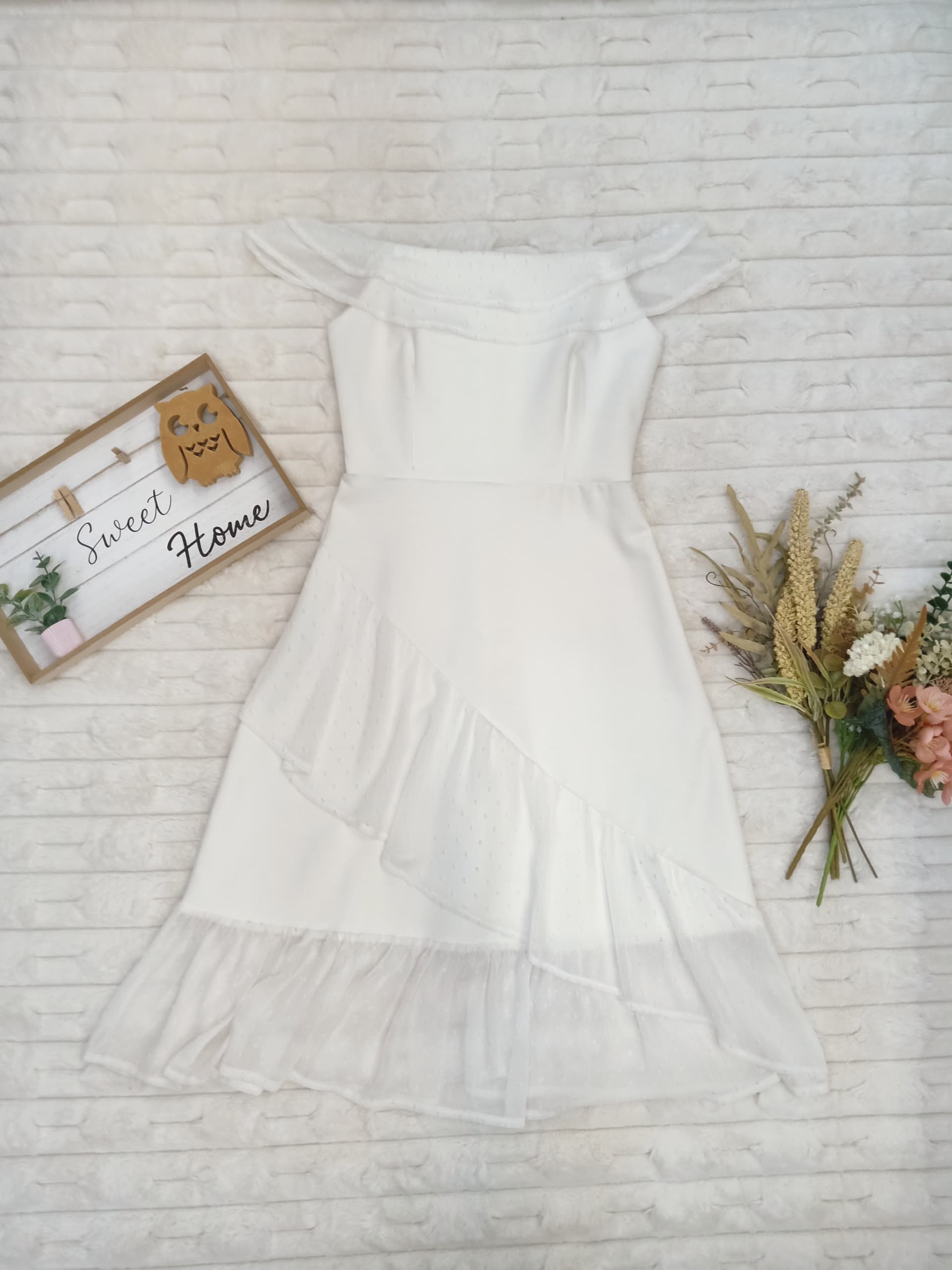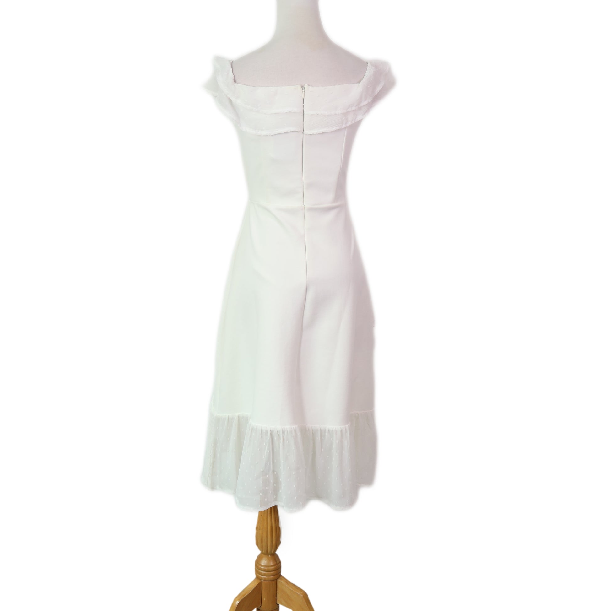 Off-Shoulder with Eyelet Sheer Midi Dress