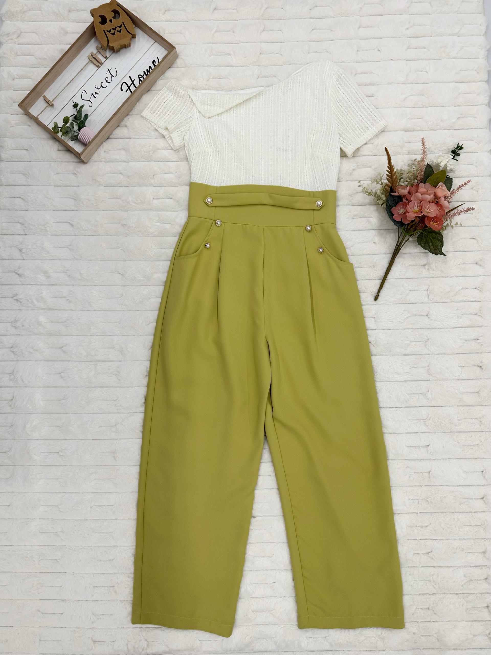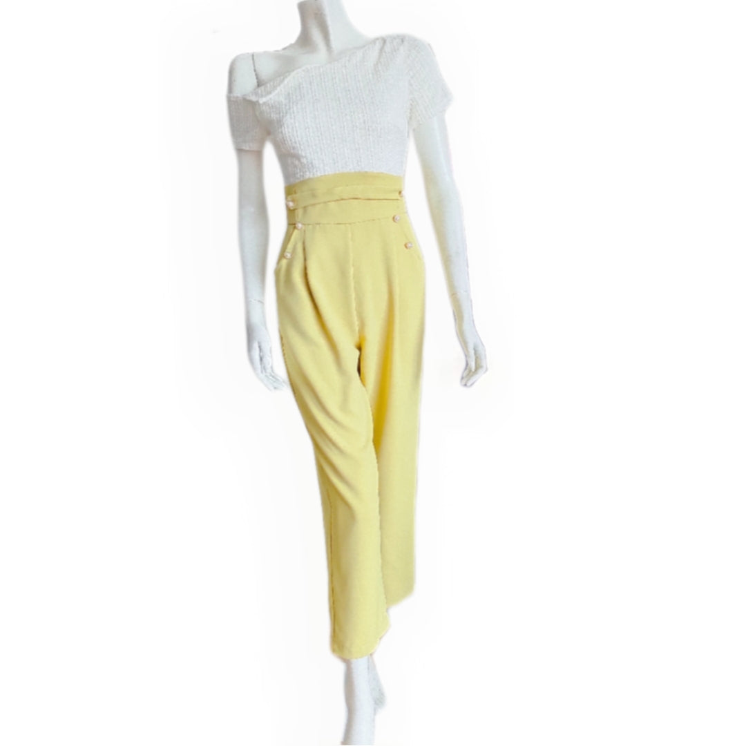 One-Shoulder Cap Sleeves with Gold Faux Pearl Jumpsuit