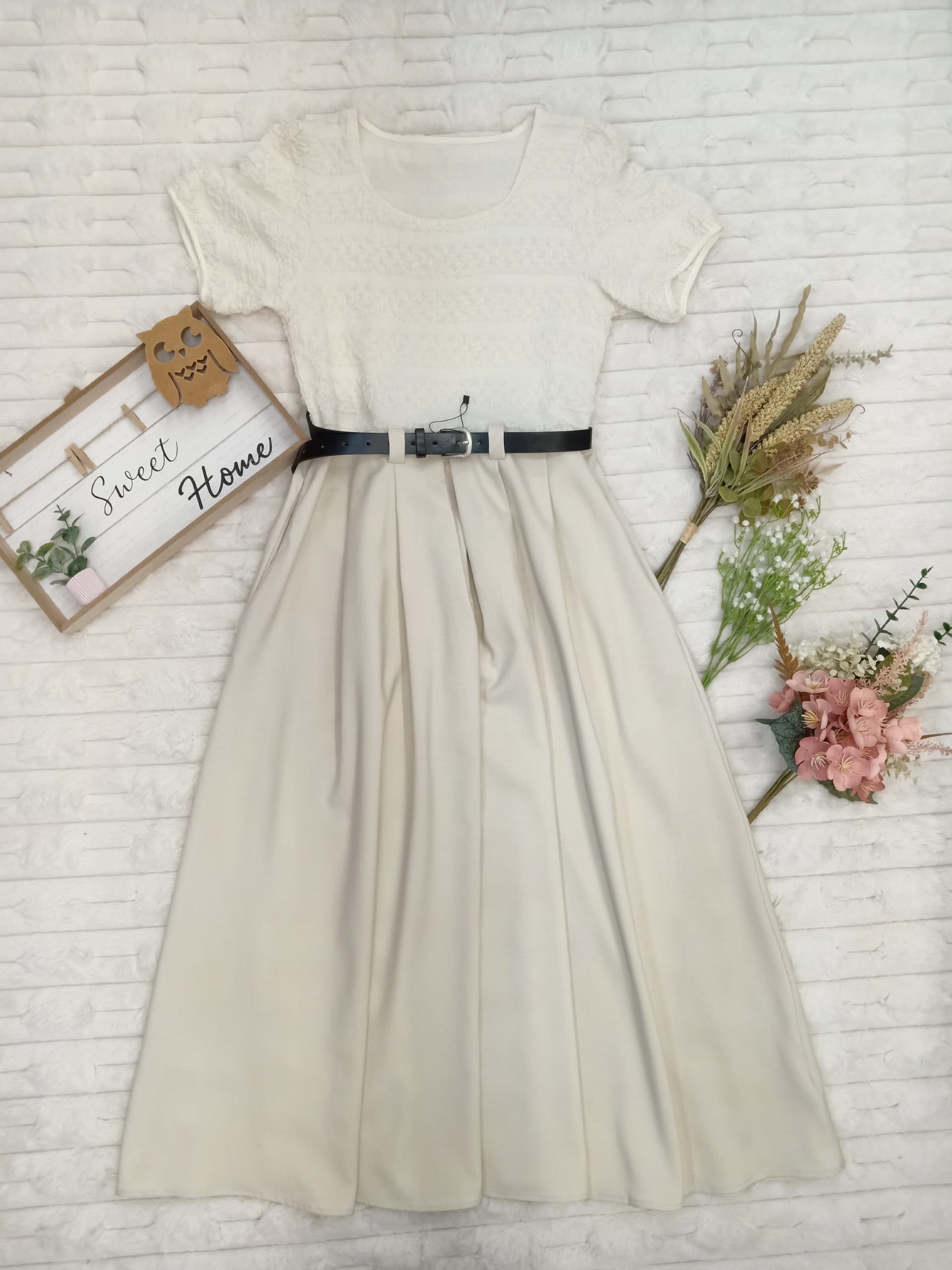 Roundneck Belted Midi Dress