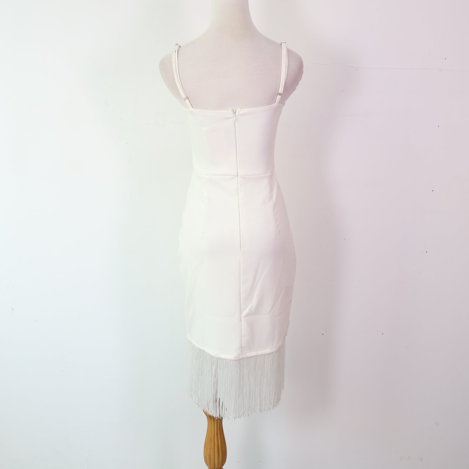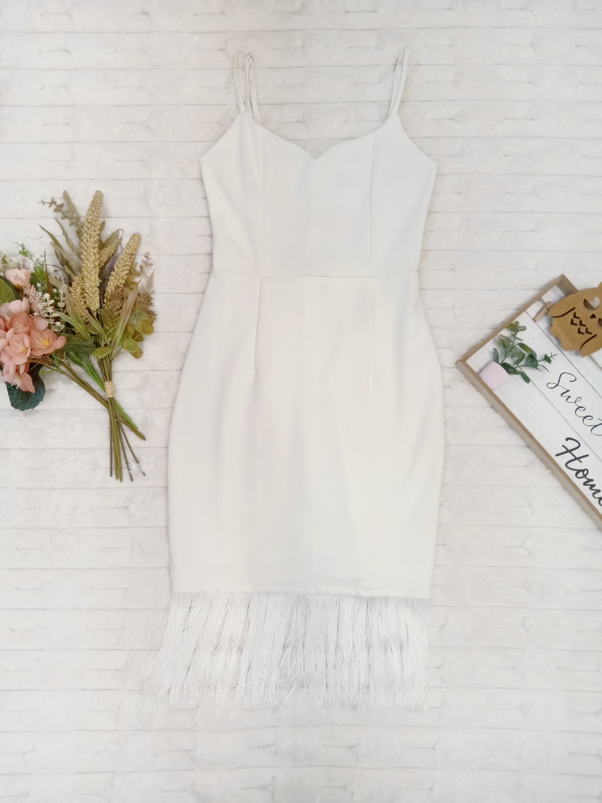 Spaghetti-Strap Sweetheart Neckline with Fringe Midi Dress