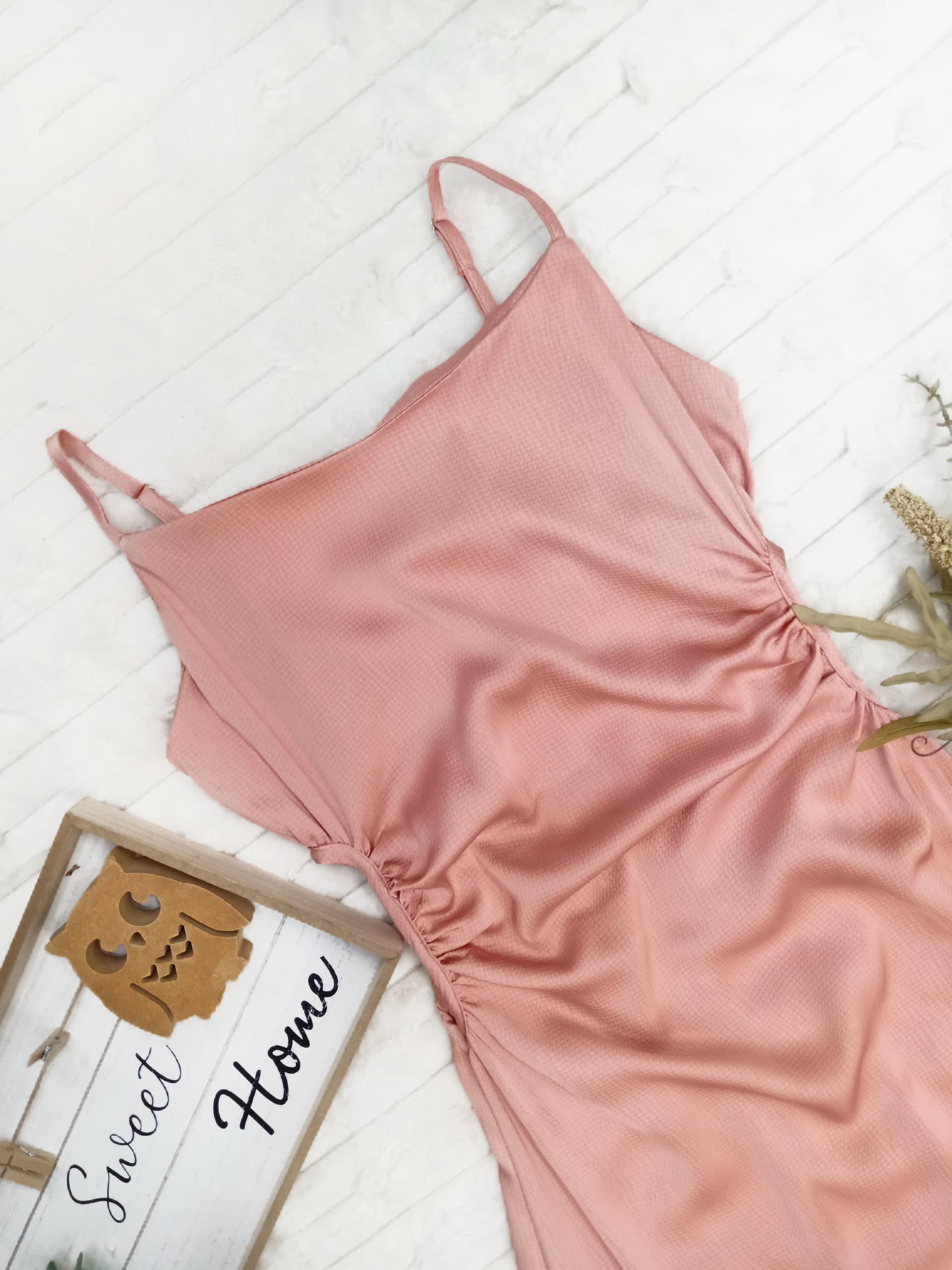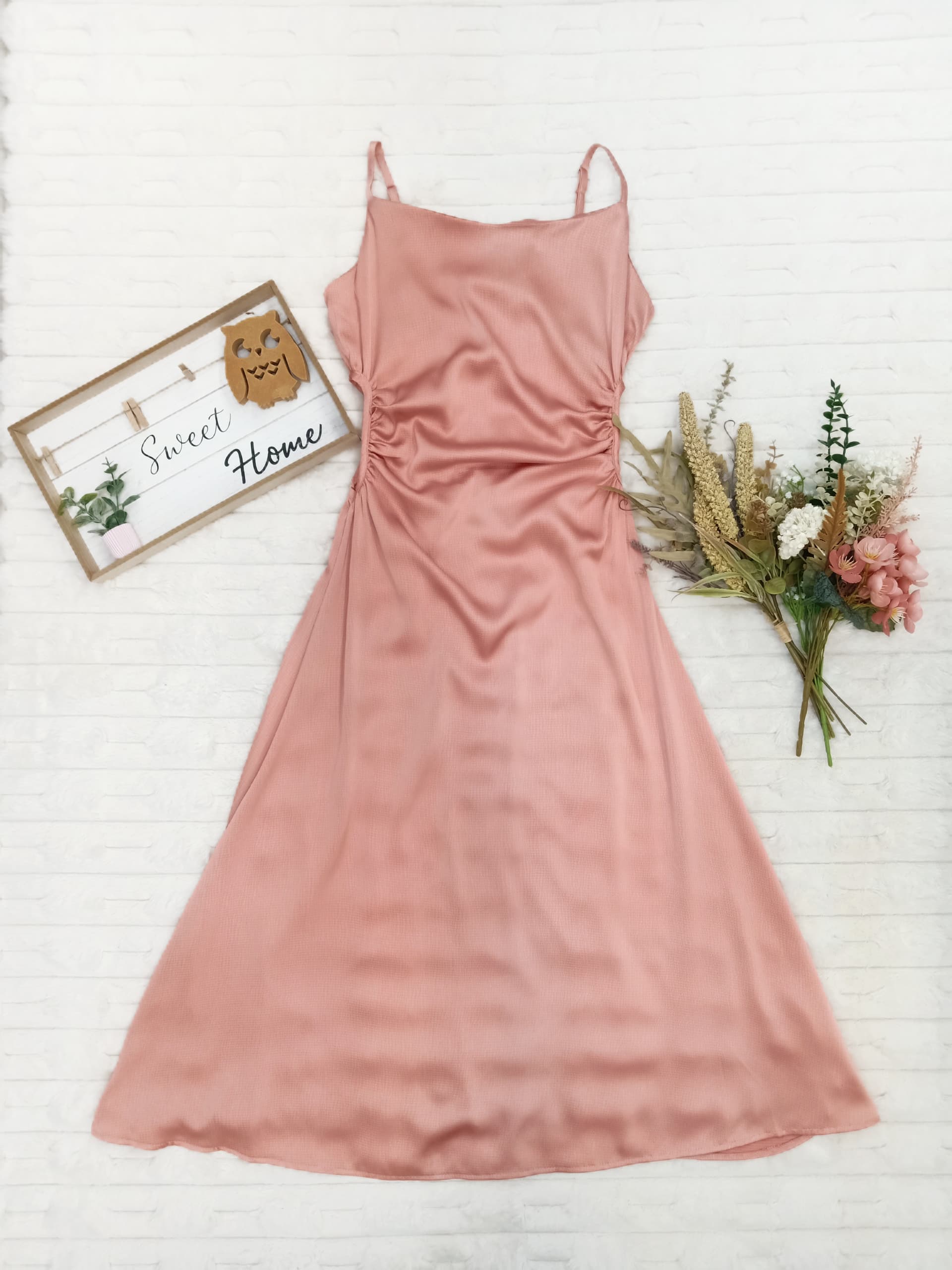 Spaghetti-Straps with Cutout Side Waist Midi Dress
