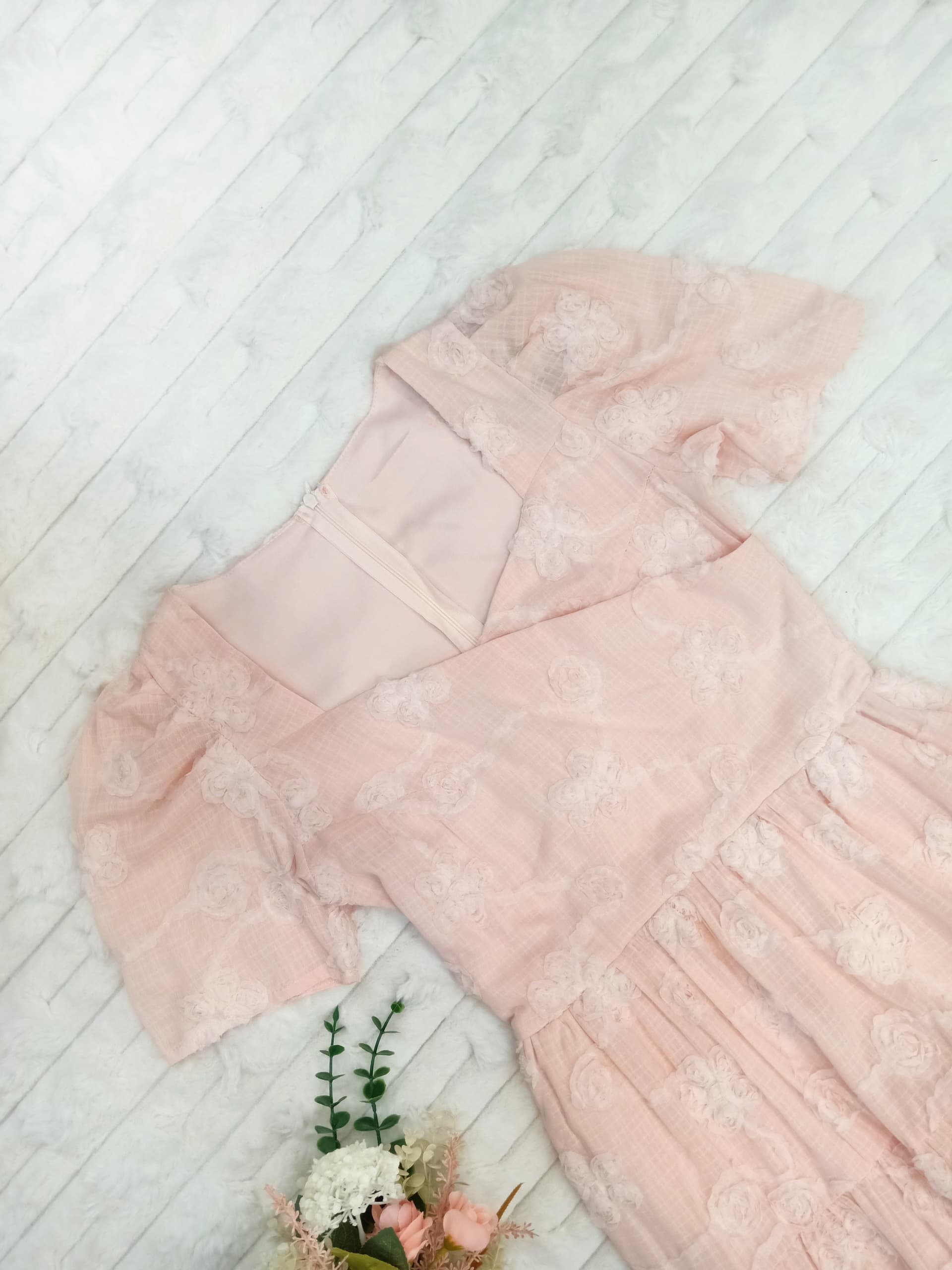 Surplice Neck Floral Embroidered Midi Dress