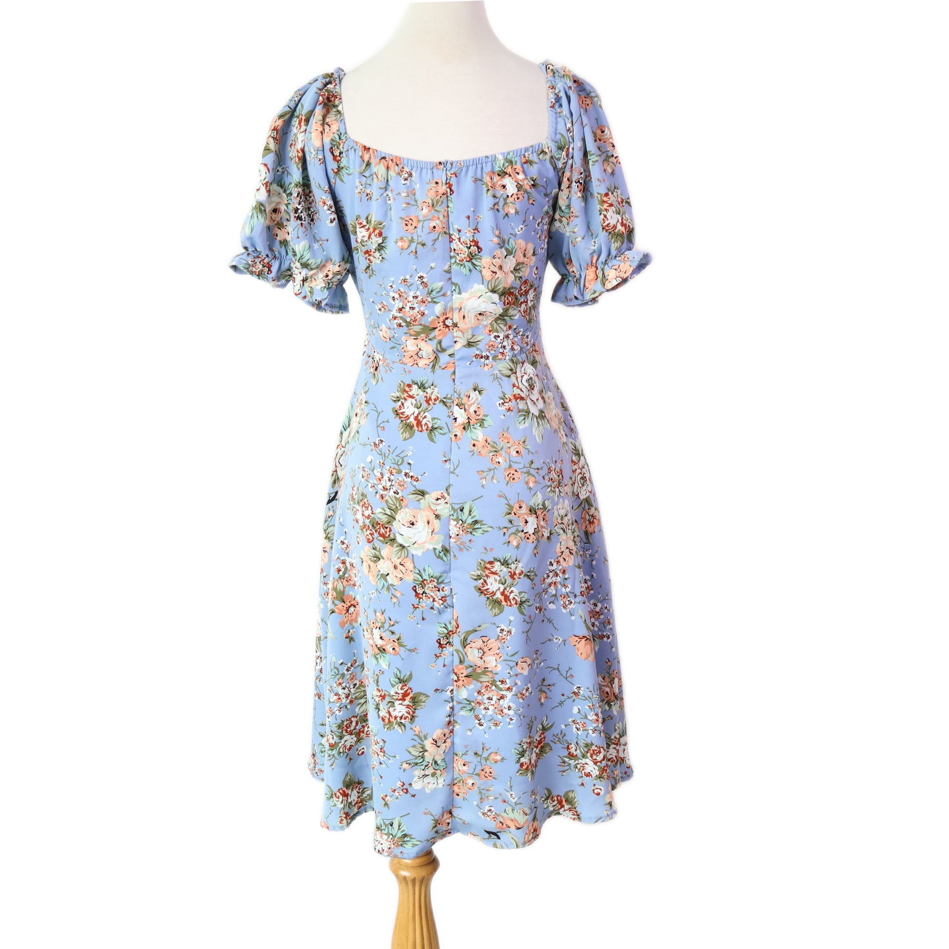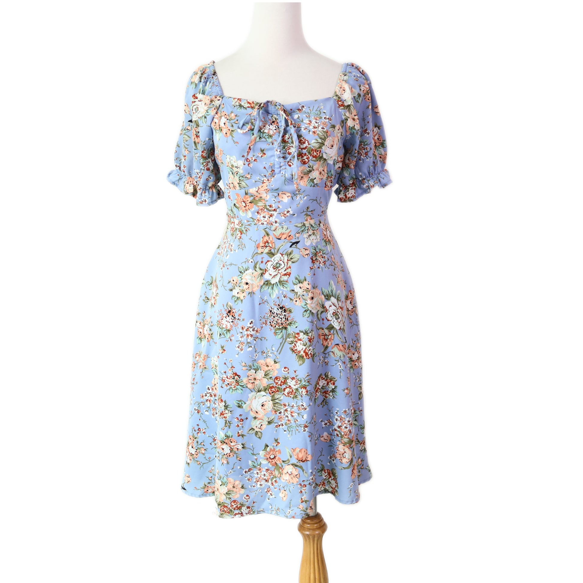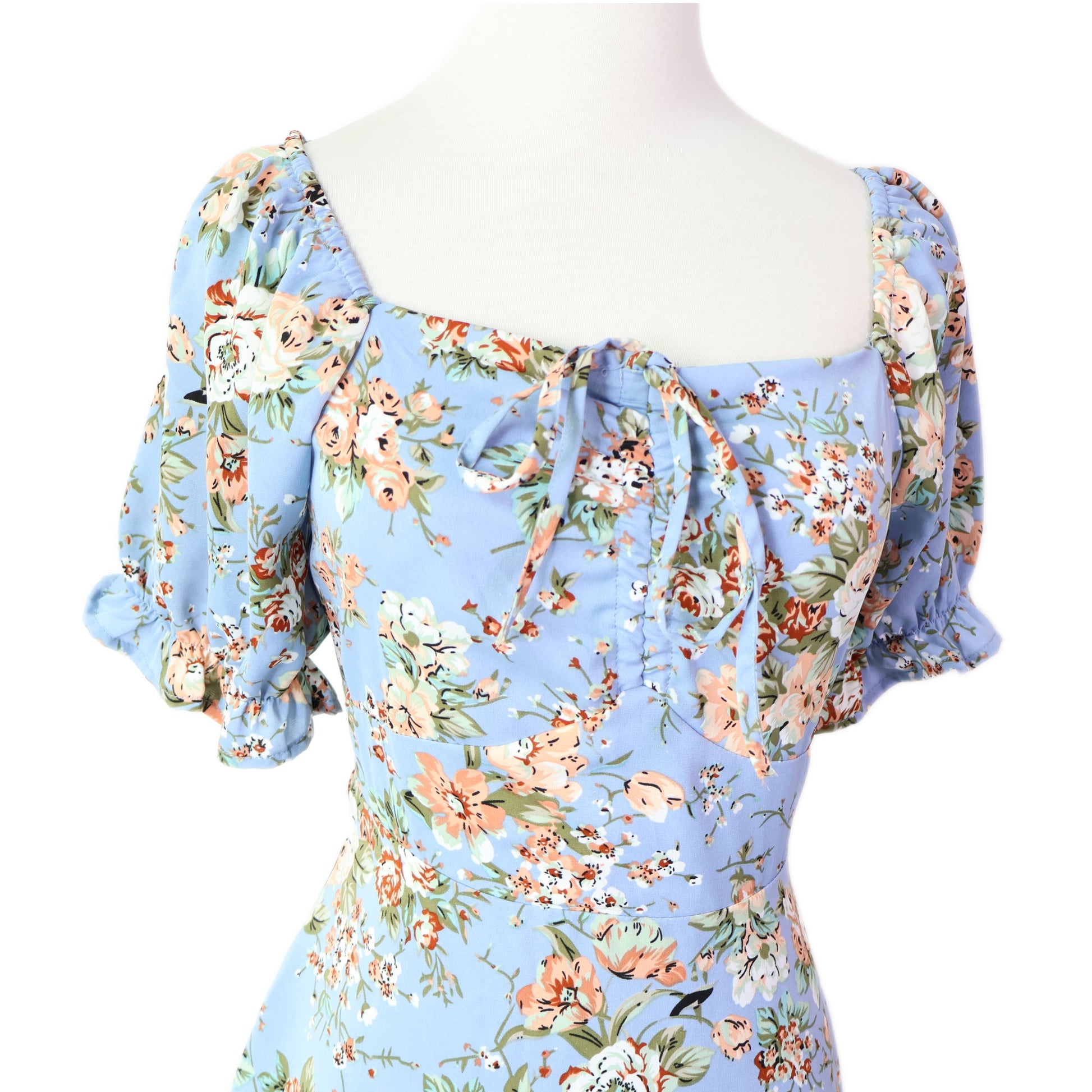 Sweetheart Puff-Sleeves Floral Printed with Pockets Midi Dress