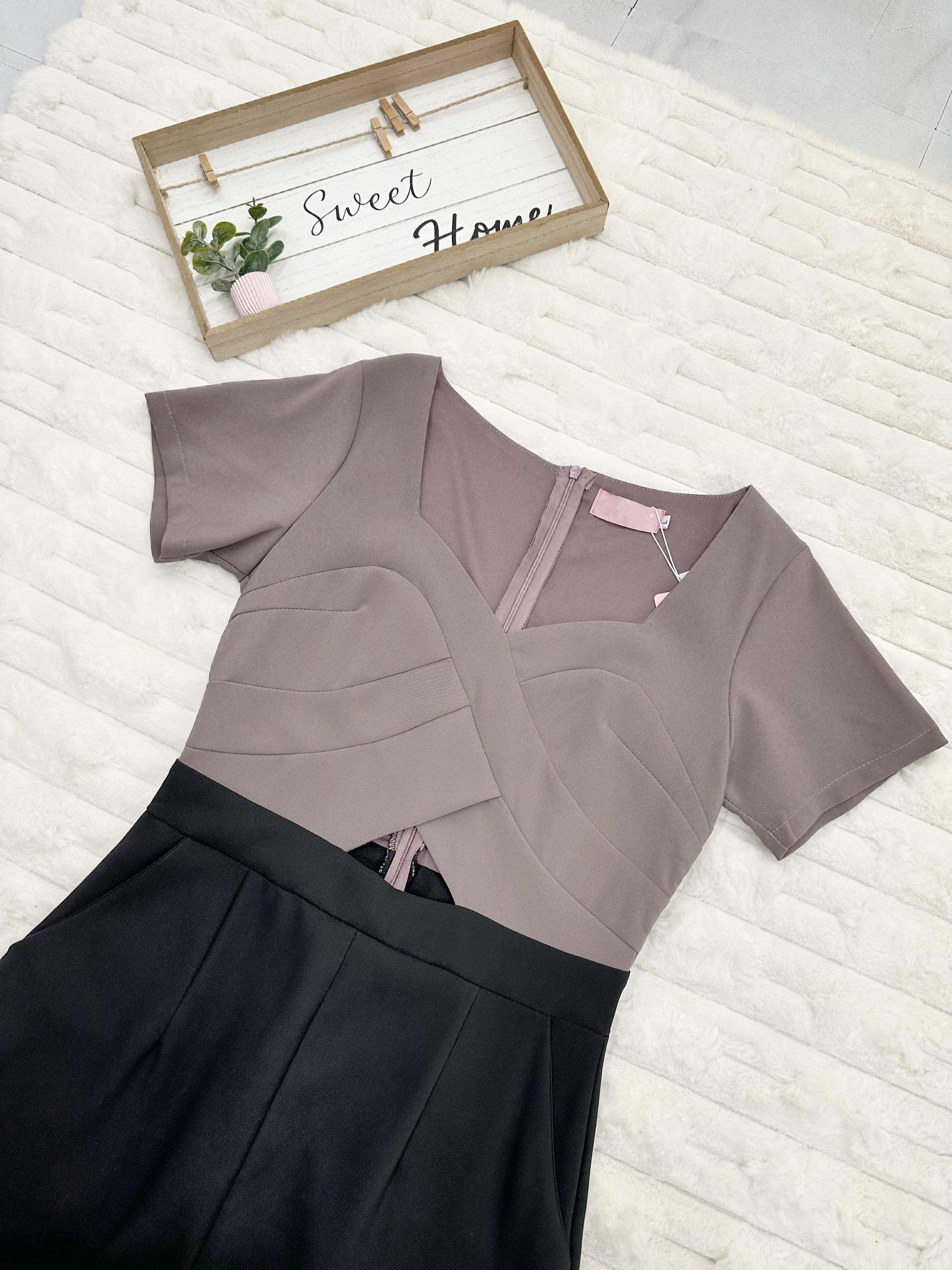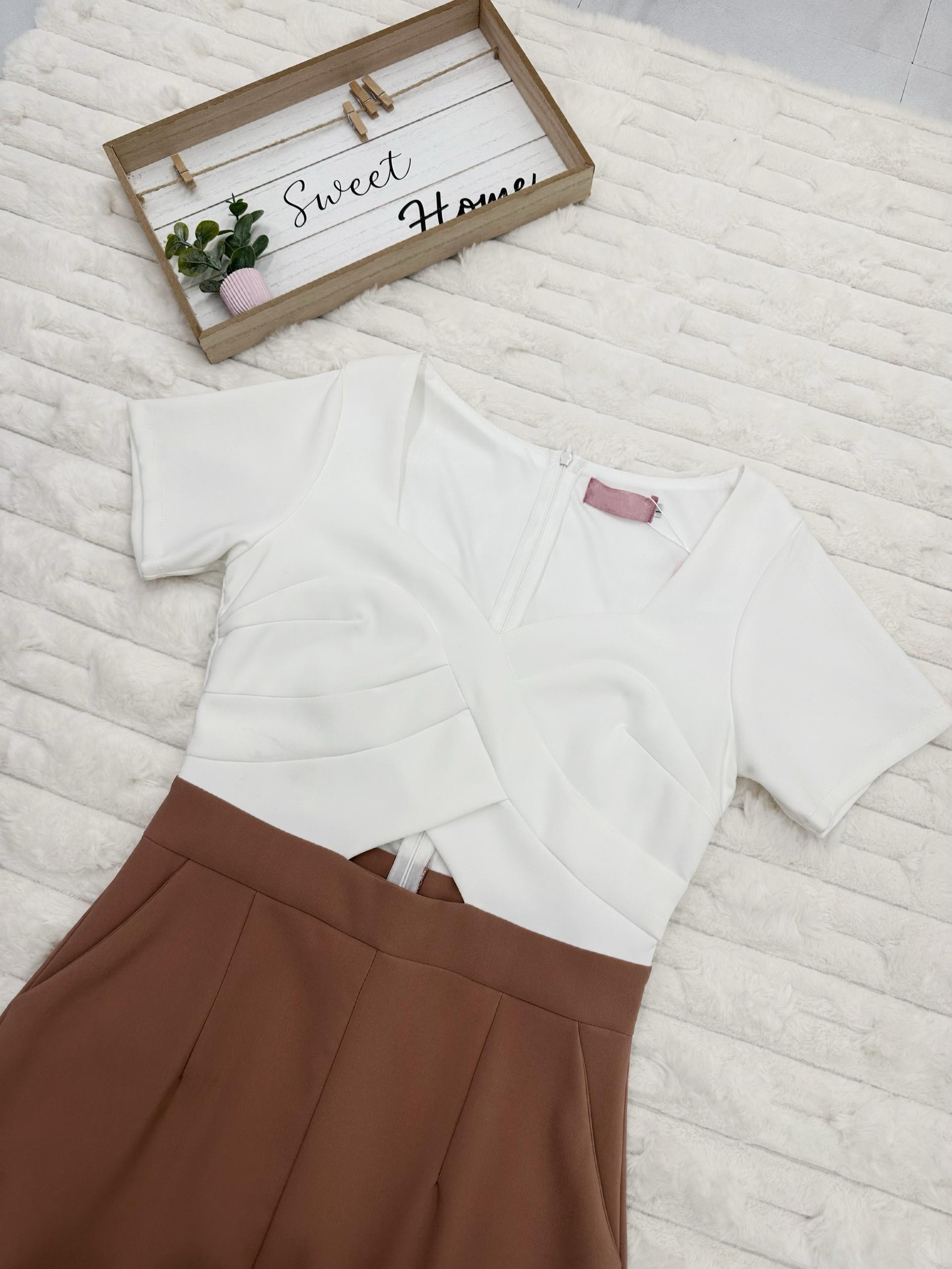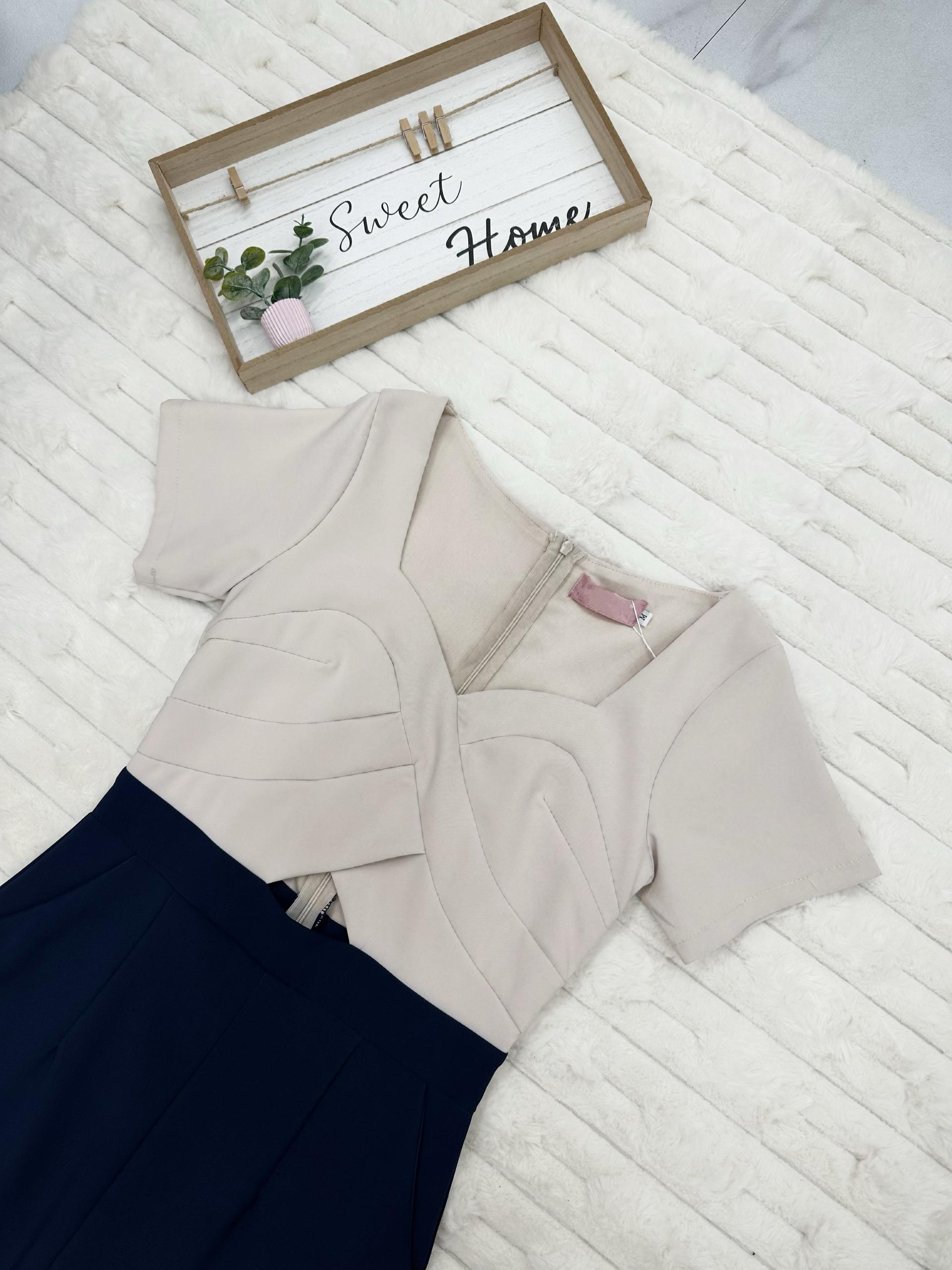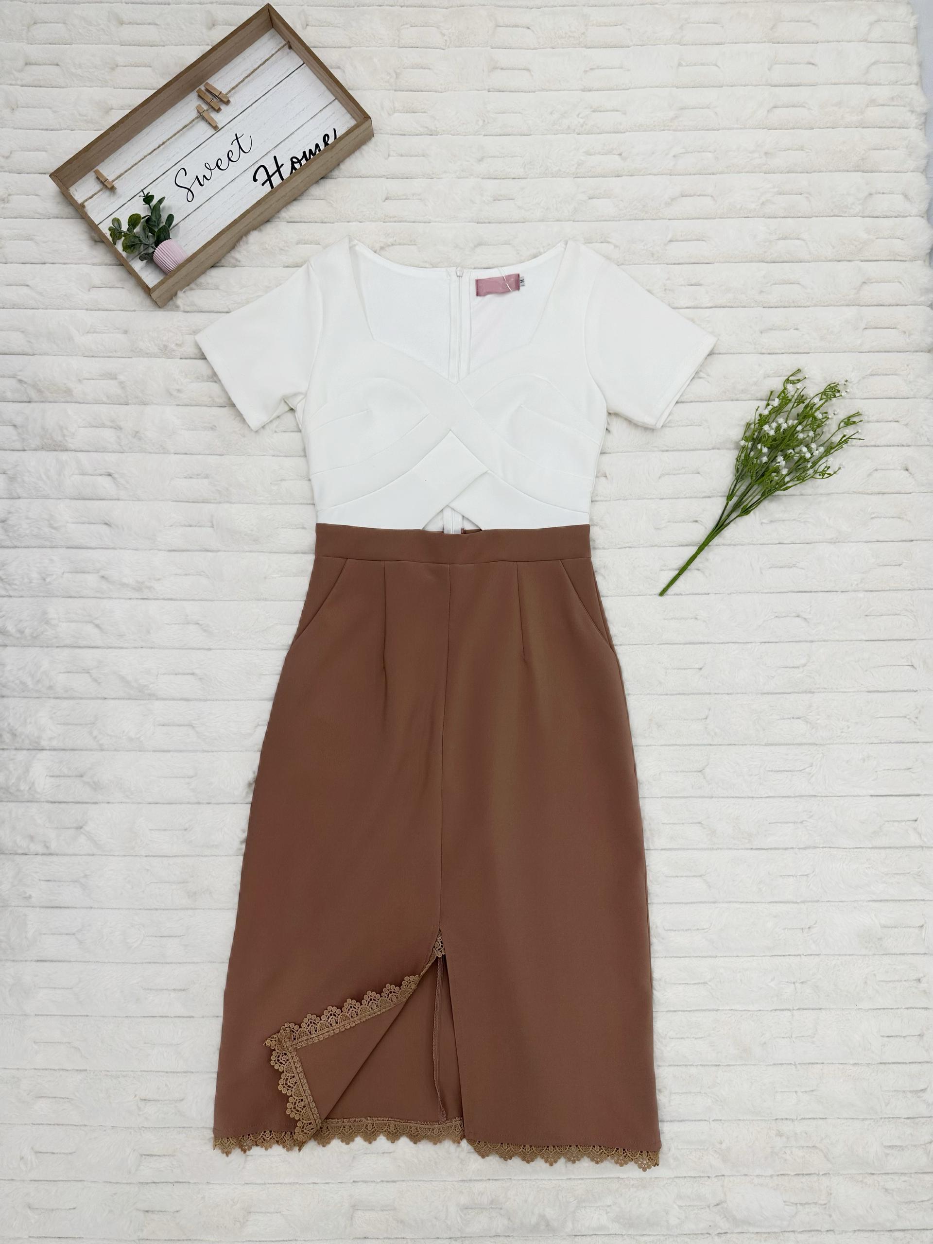 Two-Tone Cutout Lace Trim with Pockets Midi Dress