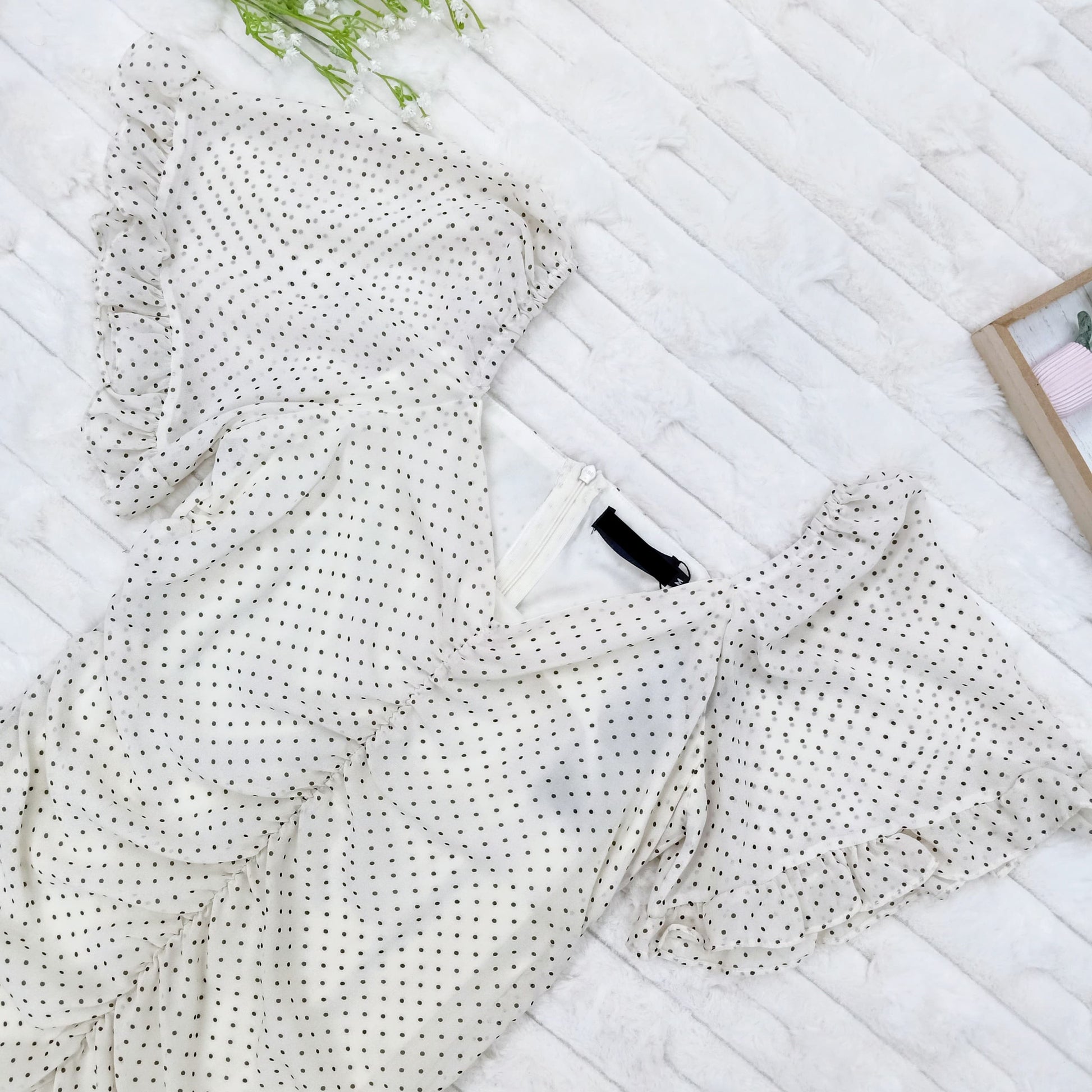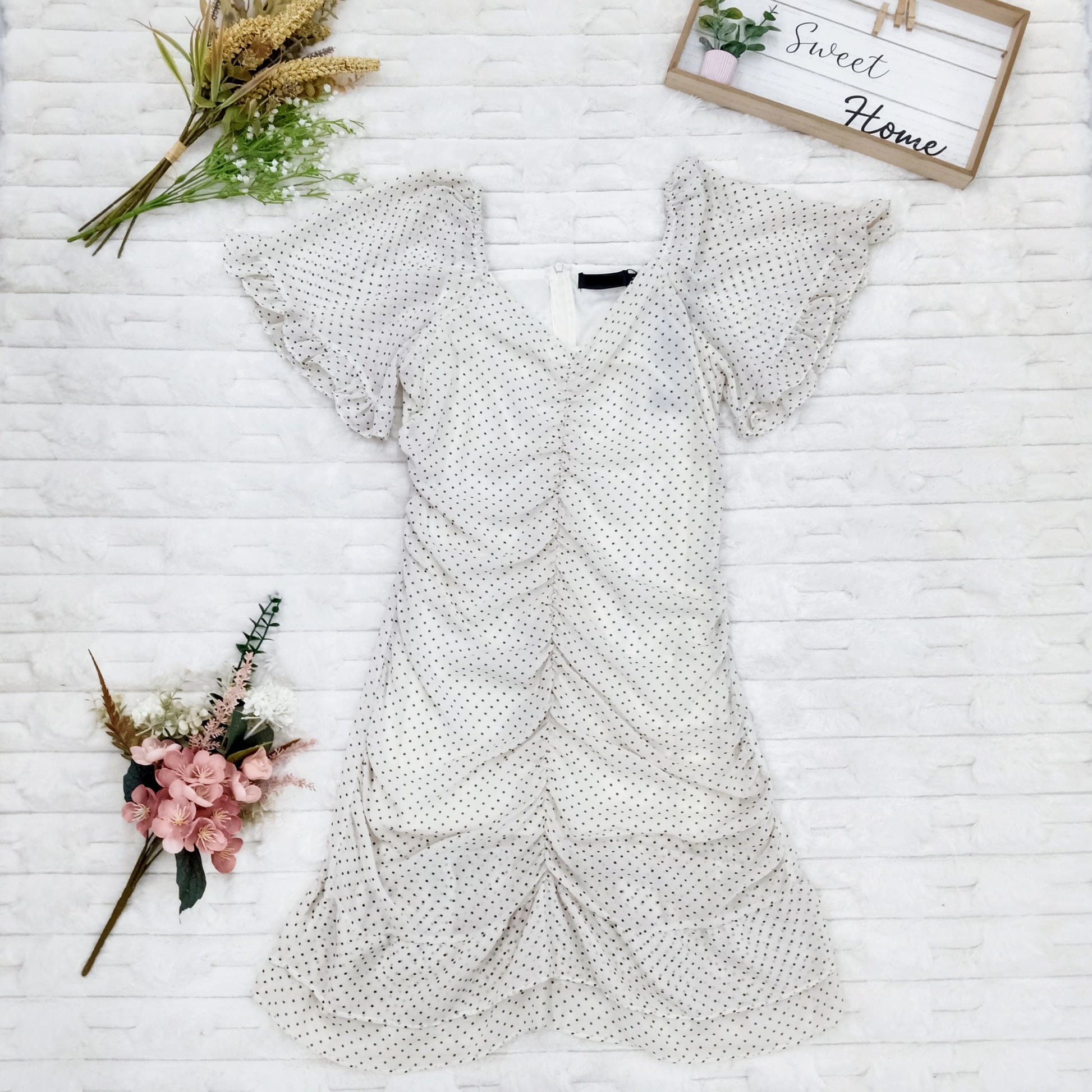 V-Neck Polka Dot Ruched Knee-Length Dress