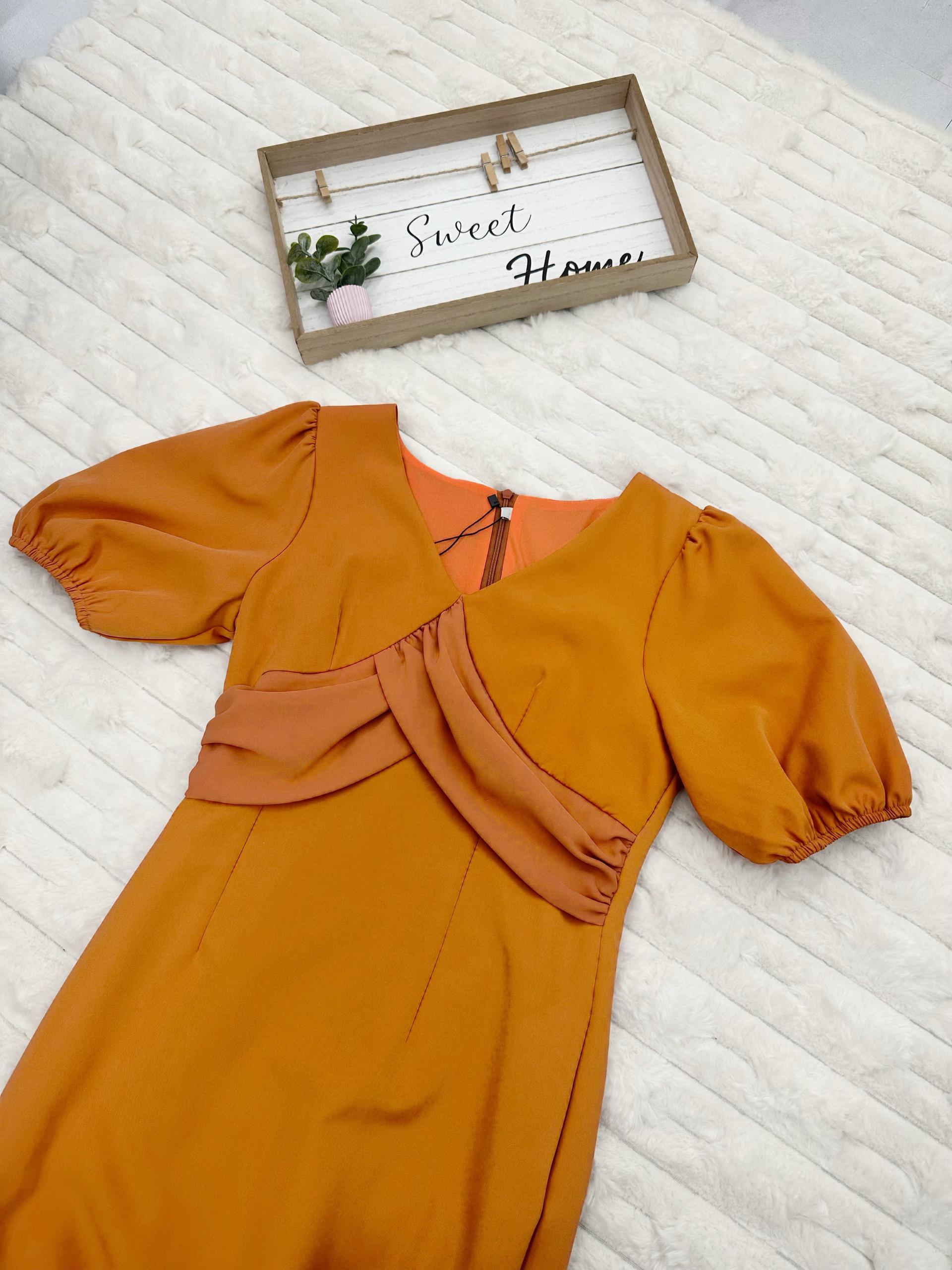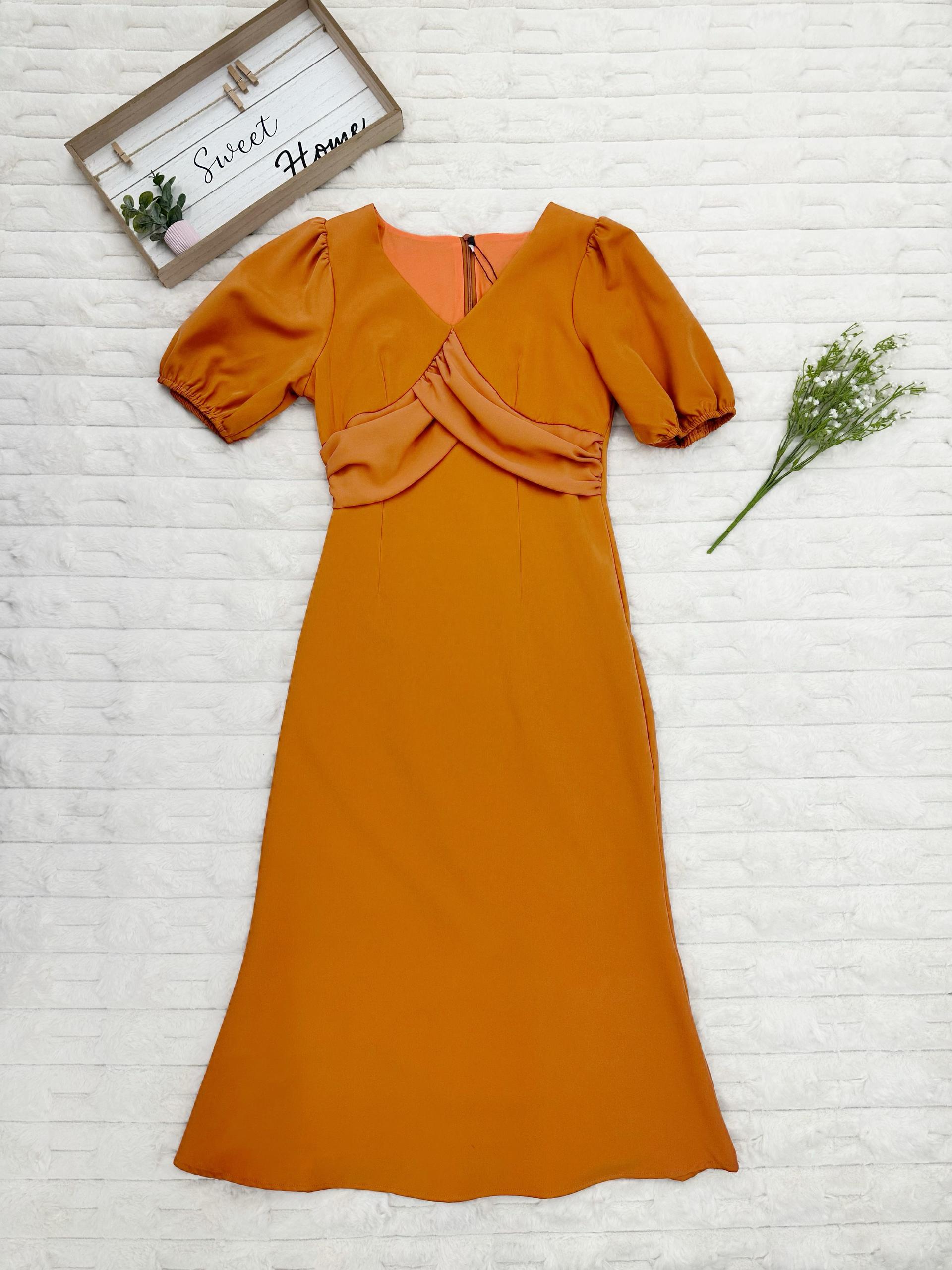 V-Neck Puff Sleeves Mermaid Midi Dress